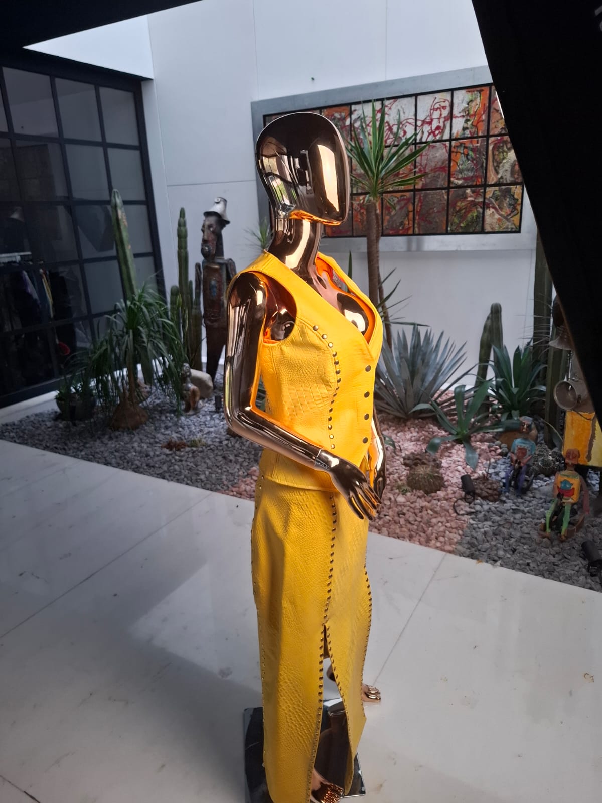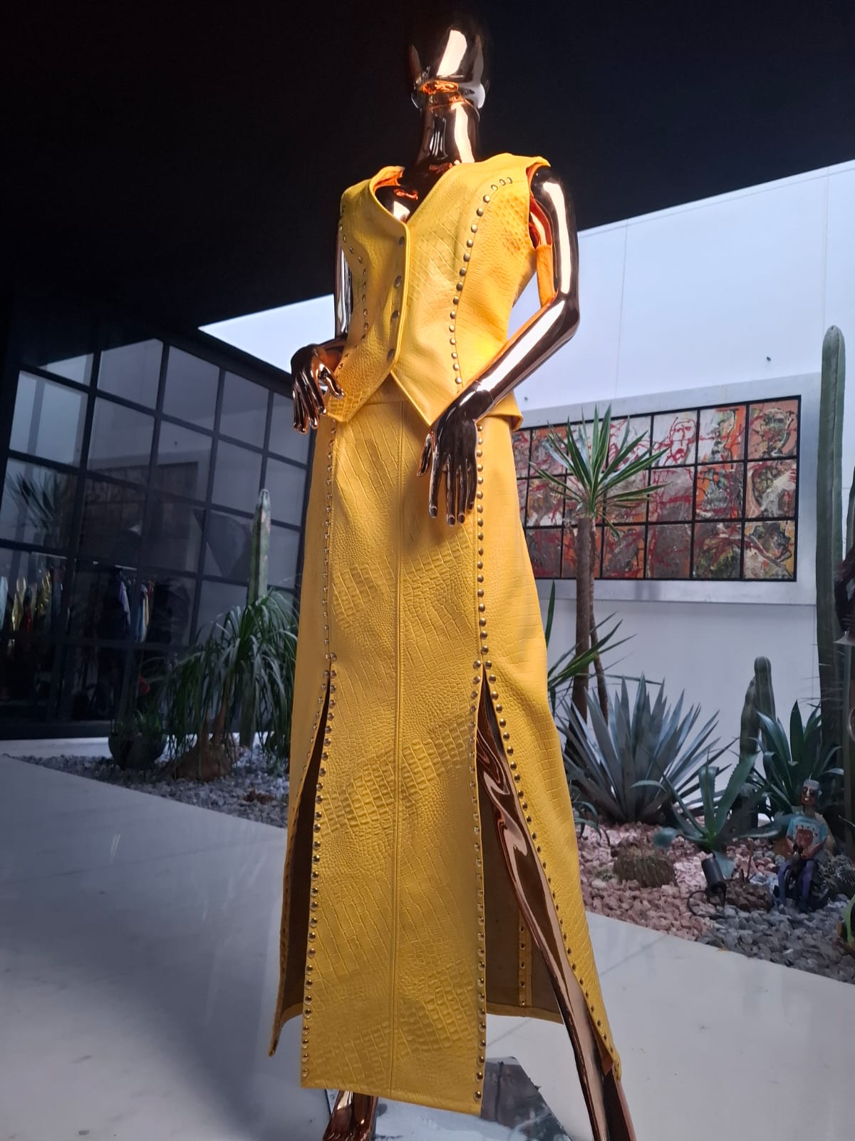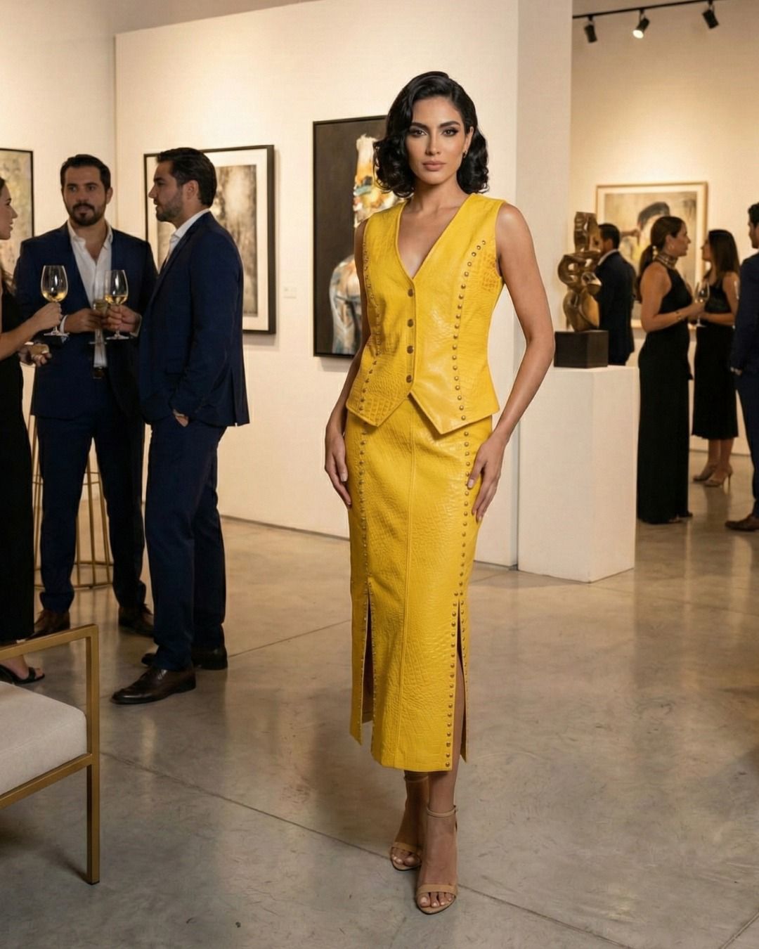 Set Chaleco & Falda piel color amarillo